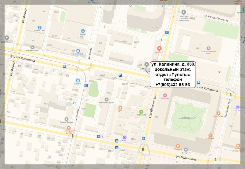 Адрес магазина - г. Краснодар, ул. Калинина, дом 333, отдел «Пульты», телефон +7 (906) 432-98-96.